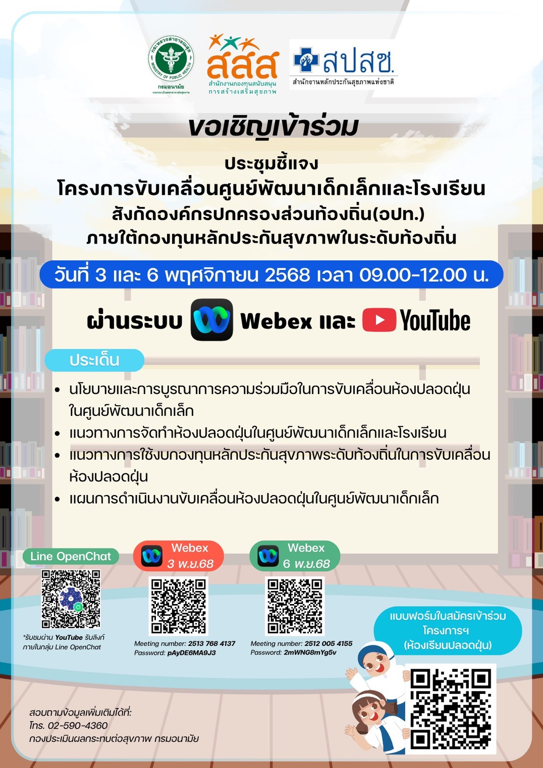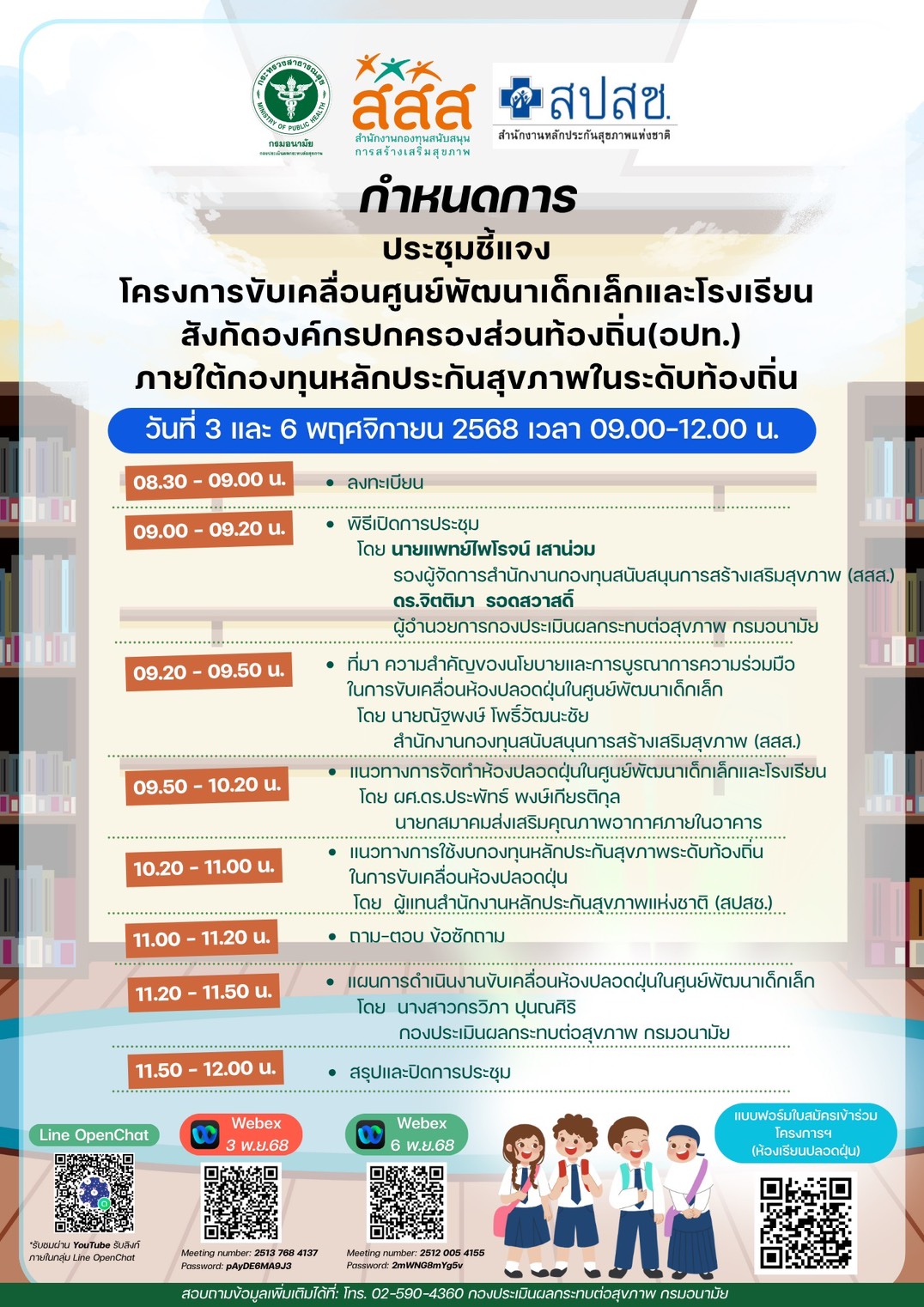 วันที่ 3 และ 6 พฤศจิกายน 2568 เวลา 09.00 – 12.00 น. ผ่านระบบ Webex และ YouTube
